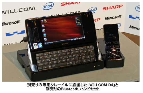 ウィルコム、モバイル通信端末「D4」、Windows VistaとAtom搭載で