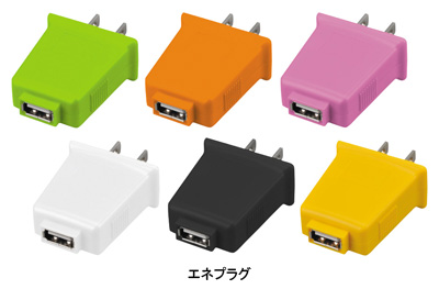 携帯オーディオなどUSBを電源とする機器を、直接コンセントから給電できるACアダプタ。旅行先や出張先などPCが無い環境でも、コンセントがあればUSB機器を充電できる。サイズは幅42×奥行き65×高さ22mm、重さは約30g。カラーはホワイト、ブラック、イエロー、グリーン、オレンジ、ピンクの6色。