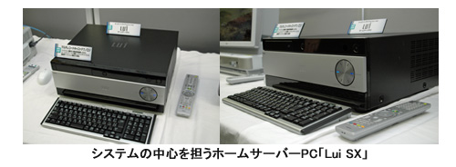 「Lui」とは「Life with Ubiquitous Integrated solutions」の略で、家庭内に散在している映像や音楽、写真などをホームサーバーPCで一元管理するシステム。サーバーPC内のコンテンツをリビングや個室のPCなどに配信したり、専用端末を使って外出先からサーバーPCを遠隔操作することができる。