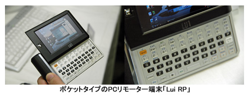 PCリモーター端末の「Lui RN」と「Lui RP」は、自宅にあるホームサーバーPCを遠隔操作するための端末で、独立したアプリケーションなどは搭載しない。無線LANなどを利用したネットーワークを介して、ホームサーバーPCの全てのPC操作を遠隔操作できるリモートスクリーン機能と、リモート端末側のSDメモリカードやUSBメモリにサーバーPCのファイルを保存できるファイル転送機能を備える。
