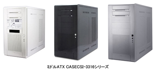 「CASECSI?3316」シリーズはアルミ製ボディを採用し、デルタ社製の550W電源を搭載する同社オリジナルのPCケース。拡張ベイは5インチベイを5基とHDDの取り外しが容易にできるレール式の3.5インチシャドウベイを5基備える。12cmの大口径ファンを3基持ち、前面からHDDとケース全体の吸気、背面からはケース全体の排気、側面からはパッシブダクトファンによりCPU部分の吸気を行う。