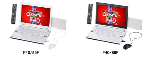 一方、「Qosmio F40シリーズ」は、「F40/85F」「F40/86F」の2モデルをラインアップする。両モデルとも、15.4型ワイド液晶を搭載し、地上デジタルTVチューナーを内蔵する。