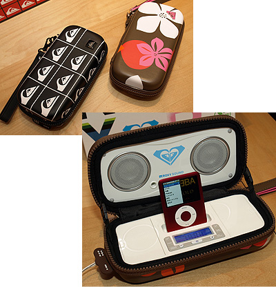 Roxyは、ブラウンの地に花柄をあしらったデザイン。ジッパーを開けると本体はホワイトだ。Quiksilverは、ブラックの地にQuiksilverのロゴマークをあしらったデザイン。ジッパーを開けると本体はブラック。同社には他にも魅力的なiPod用スピーカーがあって、それらも日本語化に取り組んでいるそうなので、近いうちにお目にかかれるかもしれない。