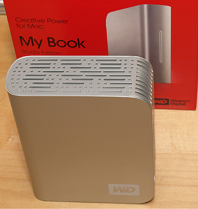 最後にWestern Digital社製の外付けハードディスク「MyBook Studio」。MacBook ProやiMacのデザインにマッチしたシルバーボディで、放熱のために開けられた側面のスリットがデザインアクセントになっている。