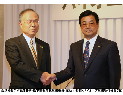 パネルサイズはパイオニアが現在販売している42、50、60V型を中心に検討する。新型パネルは松下が生産。パイオニアに供給すると同時に自社製品でも使用する。同時に、2社でパネルを共通化することで「プラズマパネル開発スピードを加速し、生産効率を高め、コスト競争力を向上させる」(森田研・松下電器産業常務役員)狙い。