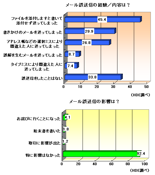 HDE、メール送信に関する実態調査、約7割がメール誤送信を経験