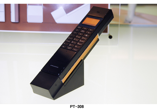 コードレス電話機「PT-308」は電話線に接続する親機ユニットと子機のコードレス電話機で構成。電話機能は子機のみに搭載した。子機のサイズは高さ180×幅48×厚さ20.5mmで、持ちやすい大きさに仕上げた。