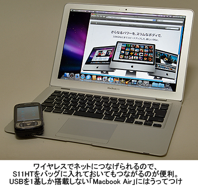 S11HTの最大の弱点は、対応エリアが狭いこと。東京を中心に関東地方で利用する分には、まったく不自由は感じないものの、ほかの地方では大都市を中心としたエリアに限られてしまう。しかも、対応エリアとなっている場所でも利用できないことが多い。試しに名古屋で持ち歩いていたところ、駅ナカはともかく、外に出ると圏外になりがちだった。駅近くにはビックカメラがあり、入り口でイー・モバイル製品を売っていたため、チェックしてみると、そこでは電波がバリ3で入った。おそらく、地域全体のアンテナ数が足りていないのだろう。購入する前には、普段生活している地域が、対応エリアに入っていることを確実にチェックしておきたい。