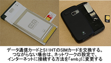 また裏技ではあるが、データ通信カードやEM・ONEのSIMカードをS11HTに入れ替えて利用することもできる。当然、音声通話はできないが、データ通信は利用できる。S11HTのSIMを使わなければ、「ケータイプランデータセット」の割引により、月額は0円になる。すでに利用している端末のコストだけで、両方の機種を利用できるというわけだ。ただし、サポートセンターに確認したところ、この方法はサポートしていないとのこと。利用は自己責任で行ってほしい。