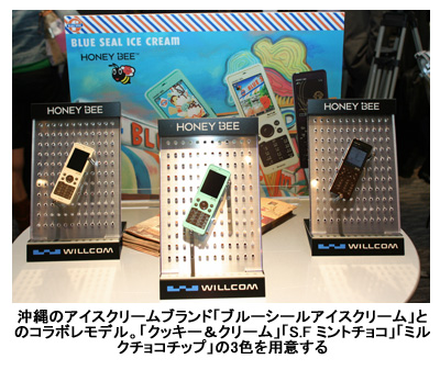 同時に発表された「HONEY BEE ブルーシールアイスクリームモデル」は、08年2月に発売した「HONEY BEE」と、沖縄のアイスクリームブランド「ブルーシールアイスクリーム」とのコラボレーションモデル。ワッフルコーンをあしらったフレームを採用。アイスクリームフレーバーをイメージした「S.F ミントチョコ」「クッキー&クリーム」「ミルクチョコチップ」の3色を用意する。