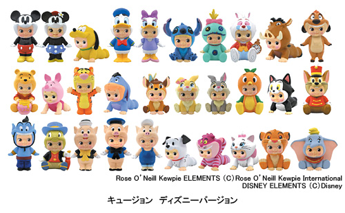 「キュージョン」は、ローズオニールキューピーが各キャラクターのコスチュームを着用するマスコット付き携帯ストラップ。第4弾にあたる「キュージョン ディズニーバージョン」では、ミッキーやミニーなど30キャラクターのモデルを用意する。今後も「キュージョン ディズニーバージョン」は、ラインアップを拡大させる予定。