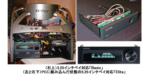 価格はオープン。ラインアップと実勢価格は、3.5インチベイ用の「Basic」が4980円前後、5.25インチベイ対応でディスプレイや音量調節用のつまみを備える「Elite」が1万1800円前後、5.25インチベイ用でフロントにディスプレイやコントロール用ボタンを搭載する「Premier」が1万3800円前後の見込み。また、ノートPCやディスプレイの枠に取り付けられるUSB接続の「E-Z」が3980円前後の見込み。
