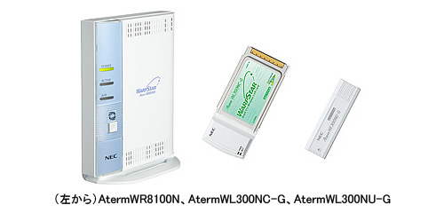 2社ではルータ単体モデル「AtermWR8100N」、USBスティックタイプ子機「AtermWL300NU-G」、「WR8100N」と「WL300NU-G」のセットモデル「AtermWR8100N USB スティックセット」、PCカードタイプ子機「AtermWL300NC-G」、「WR8100N」と「WL300NC-G」のセットモデル「AtermWR8100N ワイヤレスカードセット」をラインアップした。