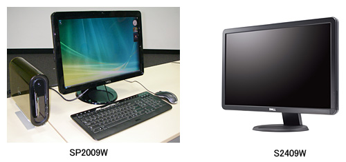 「SP2009W」は、「SP2008WFP」の後継機で、小型デスクトップPC「Studio Hybrid」の丸みのあるきょう体に合わせて、角を丸くし光沢のある素材を使ったデザインが特徴。解像度は1680×1050ドット(WSXGA+)で、輝度は300cd/m2、視野角は上下/左右ともに160度。