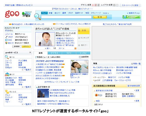 「今、インターネットビジネスは踊り場にある。しかし、否定的な意味ではなく、次のステージに移る“助走”の段階ということだ。そういう意味では当社も今はまだ仕込みの時期だが、3-5年後には海外向けにもサービスを展開したいと考えている。その際、欧米のサービスで良いものがあればジョイントもする。日本企業の海外進出が加速するなかで、現地社員で日本に関心を持つ人が増えており、「goo」はそうした人たちが日本を知る入り口になっている。だから、海外でも支持される素地はあると思っている」(BCN・米山淳)