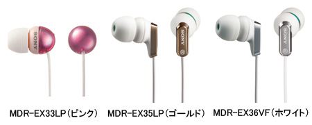 「MDR-EX35LP」「MDR-EX35SP」はシンプルなデザイン。カラーは「MDR-EX35LP」がピンク、レッド、ブルー、ホワイト、ゴールド、ブラックの6色。「MDR-EX35SP」がブラック、ホワイトの2色。ともに価格は2468円。