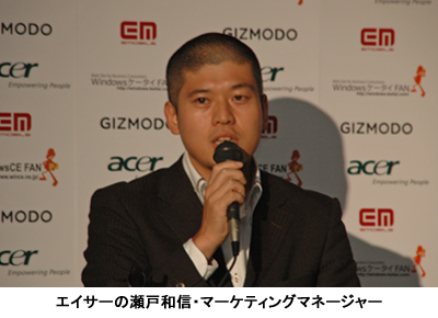 エイサーの瀬戸和信・マーケティングマネージャーによれば、「Aspire one」は、携帯電話とノートPCの間を埋める機能を持ったデバイスとして、06年から「Macles」というコードネームで開発が始動したという。