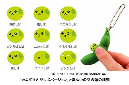 バンダイ、「豆しば」を無限につまみ出す、「∞エダマメ」に新バージョン