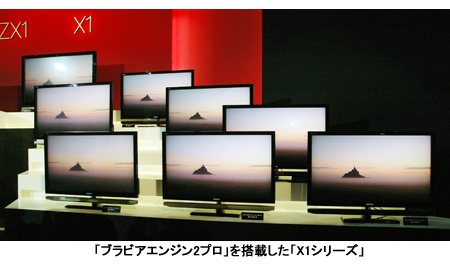 「ブラビアエンジン2プロ」を搭載したモデルでは「X1シリーズ」も展開する。画面サイズが40、46、52V型の3モデルで展開。画素数は水平1920×垂直1080のフルHD。視野角は上下左右178度、コントラストは3000:1。シルバー、ブラック、レッド、ブルー、ゴールド、ブラウンのカラーバリエーションも用意した。