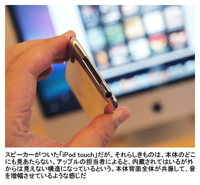 再びステージに現れたジョブズCEOは、「新しい iPod touch は、アップル史上最高の音楽プレーヤーであるのはもちろん、愛好のビデオプレーヤーでもあるし、(異論を唱える人もいるかもしれないが)最高のゲームプレーでもある」と語った。