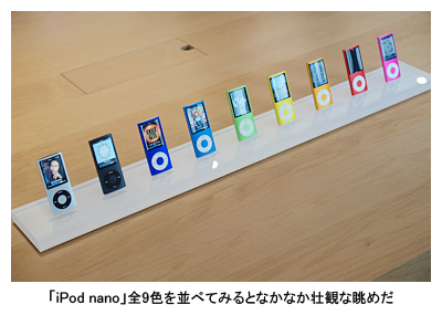 音楽を楽しむのが中心で、ファッションなどとのコーディネートで遊び心を表現したい人には、新しい「iPod nano」がおすすめだ。プレゼントとしても最適だろう。10日から発売になった「iPod nano」をいち早く手に入れようと、アップルストア銀座には、オープン前から行列ができていたほどだ。一方、音楽だけでなく、ビデオやゲームも楽しみたい人なら、新しい「iPod touch」できっと満足できるに違いない。(フリーライター・中村光宏)