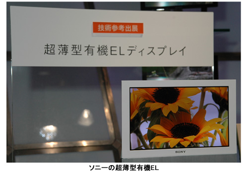 超薄型ではソニーが0.3mmという薄さの超薄型有機ELを展示した。すでに発表している最薄部が厚さ9.9mmの液晶テレビ「BRAVIA(ブラビア)」のZX1シリーズも展示し、薄さと高画質をアピールした。