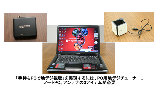 手持ちのノートPCで地上デジタル放送の視聴を可能にするPC用地上デジタルチューナー。今回は、手持ちノートPCと外付けのPC用地上デジタルチューナーを組み合わせて、本当に地デジ放送の視聴を実現できるのか試した。