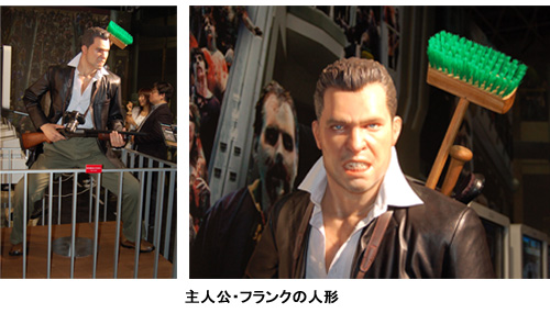 試遊台コーナーのそばに、主人公・フランクの等身大人形が展示されている。ショットガンを構え、ゾンビを威嚇している様がカッコイイのだが、背負っているものに違和感が……。よく見るとバットとデッキブラシだった。