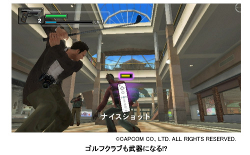 さらに進むとショッピングカートを発見。アイテムを拾うのと同じ要領で、武器を持ち替えることができる。ショッピングカートを押しながら進むとゾンビを撥ねることができる。このほか、筆者は試すことができなかったが、消火器を振り下ろしたり、ベンチを振り回したりしてゾンビにダメージを与えることができる。なお、「デッドライジング ゾンビのいけにえ」は09年2月の発売で、価格は未定。