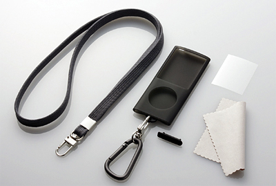 第4世代iPod nano専用のシリコンケース、液晶保護フィルム、Dockコネクタカバー、カラビナフック、ネックストラップ、クリーニングクロスの6種類のアクセサリを同梱したパッケージ。シリコンケース装着時でも、Dockコネクタへの接続ができる。ケースのストラップホールには、カラビナフックかネックストラップのいずれかを選んで装着可能。
