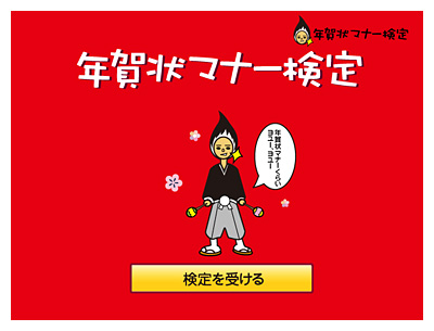 クイズ形式の質問に答えれば、年賀状に関するマナーレベルが診断できるサービス。解説付きで、年賀状に関する正しい知識が身に付く。正答率と所要時間から「天才タイプ」「我が道をゆくタイプ」など7つのタイプに分類。タイプ別に「筆王ZERO」でオススメの機能を紹介する。