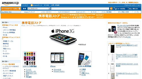 また、10月31日から12月31日までに、「携帯電話」ストア経由で「iPhone 3G」などの一部機種を除くソフトバンクの携帯電話を契約したユーザーに、3000円分のAmazonギフト券をプレゼントするキャンペーンを行う。