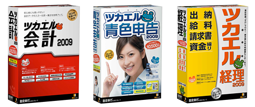 新ブランドでのラインアップと価格は、会計ソフト「ツカエル会計2009」が2万6250円、青色申告ソフト「ツカエル青色申告2009」が1万500円、経理ソフト「ツカエル経理2009」が1万4700円など。各ソフトで、基本使用料のサービス期間やバンドルソフトごとに複数のバージョンを用意し、全10タイトルを用意する。
