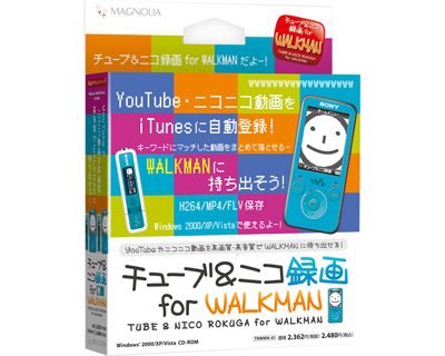 マグノリアは、「YouTube」や「ニコニコ動画」の動画をダウンロードし、ソニーの「ウォークマン」で視聴できるようにするソフト「チューブ&ニコ録画 for WALKMAN」を11月28日に発売する。