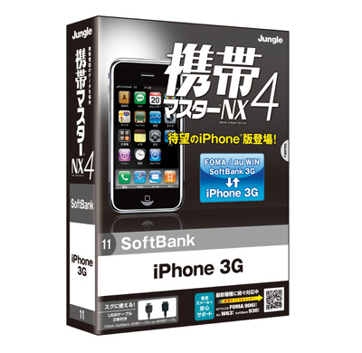 ジャングルは11月19日、iPhone 3G/iPod touch対応の携帯電話用データバックアップソフト「携帯マスターNX4 iPhone版」を、12月18日に発売すると発表した。価格は3980円。