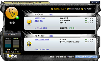 「ノートン・アンチウイルス2009」に、オンラインゲームプレーヤーに配慮した「ゲームモード」を追加したセキュリティソフト。
