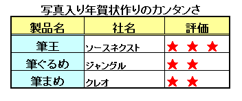 今回使用したのは「BCNランキング」の「ハガキ・毛筆ソフト」ジャンルでトップ3の常連となっているクレオの「筆まめ」、ソースネクストの「筆王 ZERO」、ジャングルの「筆ぐるめ」の3本。それぞれのソフトを使って写真入りデザイン面の作成と、機能、使いやすさを比較した。