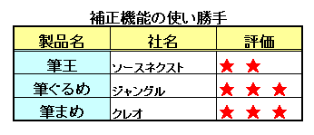 使い勝手は、初心者の場合は「筆ぐるめ」の「簡単補正」、「筆まめ」の「ワンタッチ補正」がいいだろう。「筆王」の補正機能も使いにくくはないが、少し物足りない感が否めなかった。
