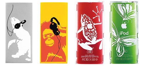 「EIAS05シリーズ」のジャケットには、動物たちがiPodを持ち、ヘッドフォンで音楽を聴いている様子をデザイン。一方「EIAP01シリーズ」では、動物たちをあしらいつつ、iPod nano裏面のアップルマークを際立たせるデザインを採用した。