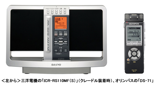 首位の三洋が11月に発売した「ICR-RS110MF(S)」は、発売直後から急激にシェアを伸ばし、12月第3週の機種別販売台数シェアで14.5%、1位を獲得した。AM/FMラジオチューナーを搭載する。AM/FMアンテナとスピーカー、充電器の3つを兼ねるクレードルを付属し、従来のモデルにはなかった据置型という新しい使い方を提案している。