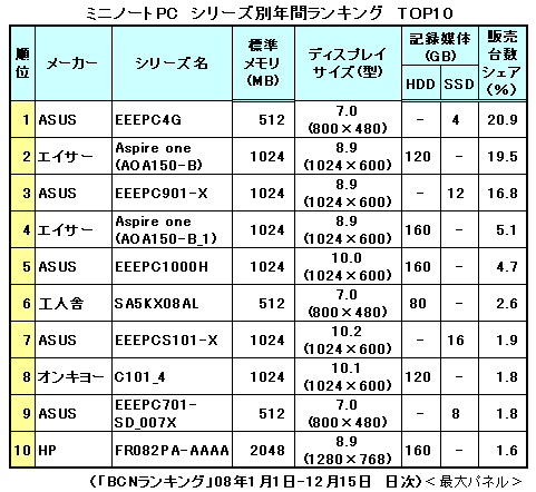 ノートPC市場を席巻したミニノートPC、08年を振り返ってみると……