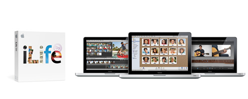 「iLife '09」は、写真管理ソフト「iPhoto」、映像編集ソフト「iMovie」、音楽編集ソフト「GarageBand」、Webサイト作成ソフト「iWeb」、DVD作成ソフト「iDVD」をセットにした統合ソフト。対応OSは、Mac OS X 10.5.6以降。