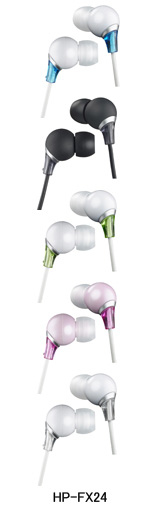 コードが1.2mの「HP-FX24」は、携帯オーディオをバッグの中に入れた状態で音楽を聴く際にも適した長さ。80cmの「HP-FX24S」は、洋服のポケットのなかの携帯オーディオで音楽を聴く場合に適しているという。実勢価格は、それぞれ2000円前後の見込み。