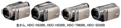 4機種とも、記憶媒体としてSDメモリカードを採用、このうち3機種はHDDまたはフラッシュメモリを内蔵したハイブリッドタイプ。ラインアップと実勢価格は、120GBのHDDを内蔵した「HDC-HS300」が16万円前後、80GBのHDDを内蔵した「HDC-HS200」が14万円前後、32GBのメモリを内蔵した「HDC-TM300」が15万円前後、SDメモリーカードのみ対応の「HDC-SD200」が13万円前後。