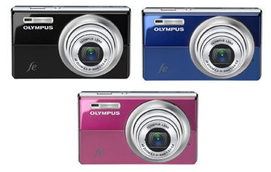 一方、「CAMEDIA FE-5010」は、撮影モードや各機能の選択時に、簡単な説明を2.7型の液晶モニタに表示する、操作性に優れたコンパクトデジタルカメラ。35mmフィルムカメラ換算で36-180mmの光学5倍ズームレンズを搭載。また、最大16人の顔を検出してピントと露出をあわせる「顔検出機能」を備える。内蔵メモリは48MB。カラーはブラック、ブルー、ピンクの3色。本体サイズは幅96.1×高さ56.6×奥行き25.5mm、重さ130g。実勢価格は3万円前後の見込み。