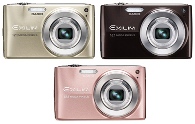 「EX-Z400」は、CCDシフト方式の手ブレ補正機能を備え、手持ちでもきれいに夜景が撮影できる。有効1210万画素のCCD、光学4倍ズームレンズ、3.0型液晶のモニタを搭載。フル充電で約550枚撮影できる長寿命の充電池も採用した。カラーはゴールド、ピンク、ブラウン。