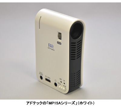 また、モバイル端末としては駆動時間が長いとありがたい。アドテックの「MP15Aシリーズ」は40分、オーエスの「PK101」は2時間、住友3Mの「MPro110」は1時間。外出先で充電できないことを考慮すると、せめて1時間以上は駆動してほしい。