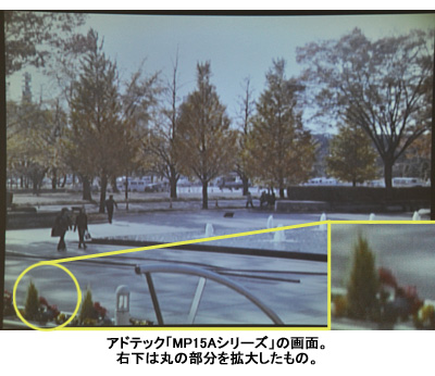 スクリーンに投影した画面は、レビューしたモデルの中で、もっとも色鮮やかにくっきりと表示された。アスペクト比は他のモデルと同様4対3だが、ややワイドに表示されるので広がりがあってよい。また、駆動音はまったく気にならなかった。難点としては、焦点調節ダイヤルがゆるくて操作しにくかったことが挙げられる。