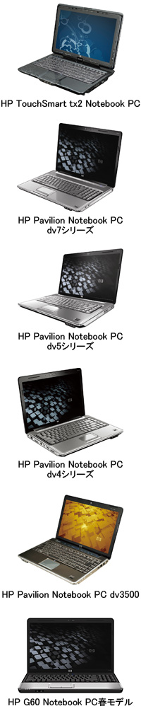 日本ヒューレット・パッカード(日本HP)は1月22日、個人向けノートPCの春モデルとして、マルチタッチ技術を搭載した「HP TouchSmart tx2 Notebook PC」と、「HP Pavilion Notebook PCシリーズ」4機種、アスペクト比16:9のワイド液晶を搭載する「HP G60 Notebook PC」の計6機種を、1月22日から順次発売すると発表した。全機種ともCPUやメモリ、HDDなどのカスタマイズに対応する。