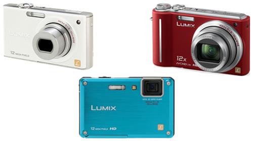 DMC-FX40(シェルホワイト)、DMC-FT1(スプラッシュブルー)、DMC-TZ7(レッド)